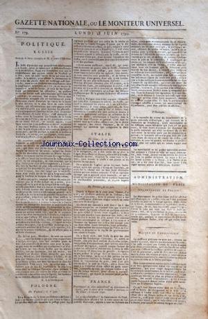 Read PDF GAZETTE NATIONALE OU LE MONITEUR UNIVERSEL [No 179] du 28/06/1790 - POLITIQUE EN RUSSIE - POLOGNE - ITALIE - FRANCE / MUNICIPALITE DE PARIS - DEPARTEMENT DE POLICE - MAISON DE CORRECTION Online